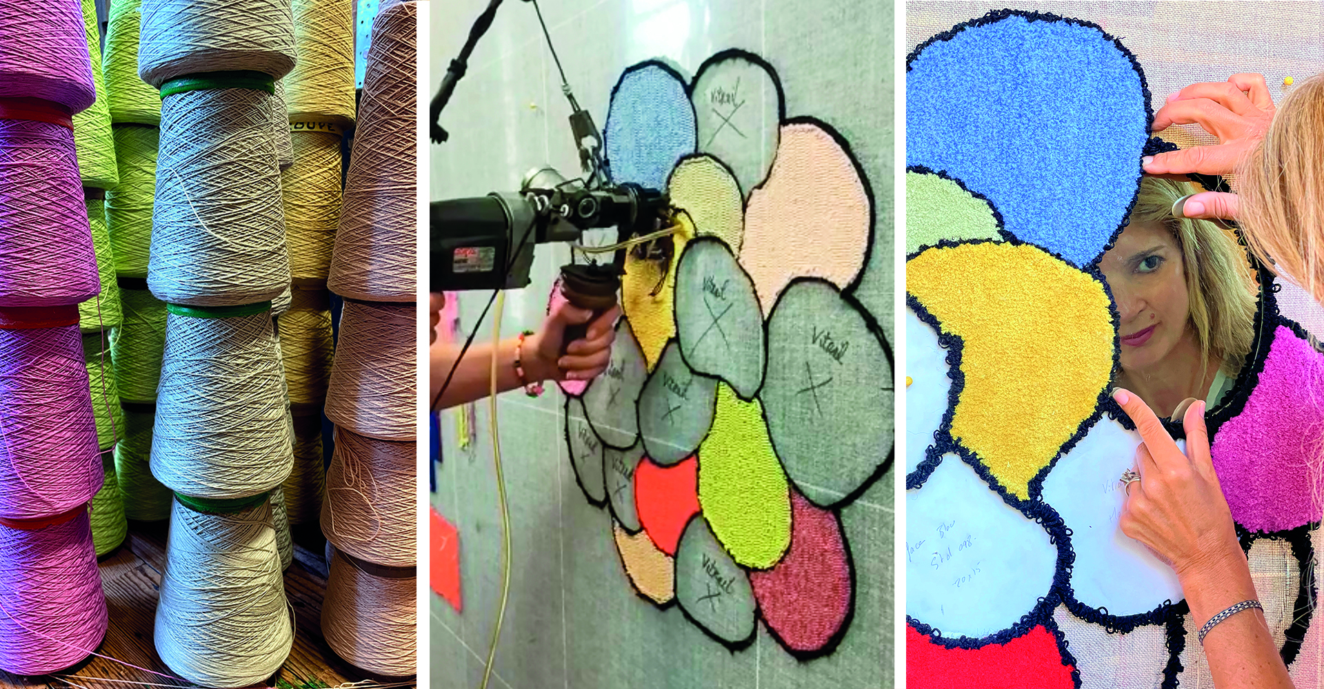 C’est une œuvre que j’ai voulue vivante et soyeuse, juxtaposant des couleurs franches déclinées dans des matières variées comme le verre, la soie et la laine.