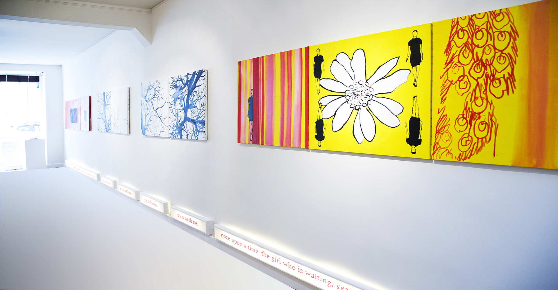 Cette attente n’est pas douloureuse ou impatiente, elle est calme. Sara Badr Schmidt a une approche récapitulative de la peinture : elle remonte le cours du temps, traverse l’abstrait, le figuratif, s’essaye au collage, parsème ses oeuvres de poèmes de Prévert, de phrases ironique ou poétiques. Cette revisitation des styles est à la fois ludique et pédagogique : Sara Badr Schmidt reprend pour mieux créer à son tour, trouver sa propre voie. C’est une volonté d’art total qu’elle manifeste, brassant formes, couleurs, commentaires, matières, même les plus triviales, les plus inattendues comme la toile cirée : l’écriture et le dessin échangent leurs prérogatives, se contredisent, se confortent, se rehaussent l’une par l’autre. On dirait parfois ces haïku, ces koan zen qui éludent le sens, repoussent l’explication, s’énoncent sans se laisser résumer. Ce dialogue, je le répète, est dépourvu d’agressivité ou d’hystérie. Ses tableaux interrogent sans provoquer, ils invitent le spectateur avec humour et délicatesse, manifestant une confiance en l’art qui est rare aujourd’hui.